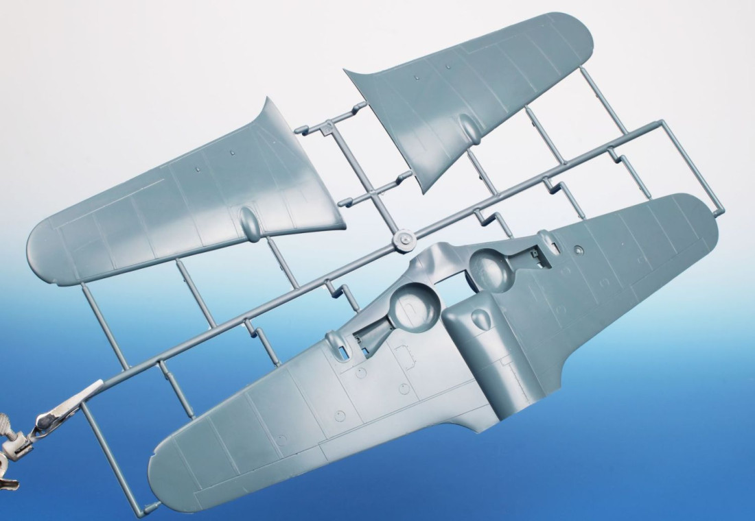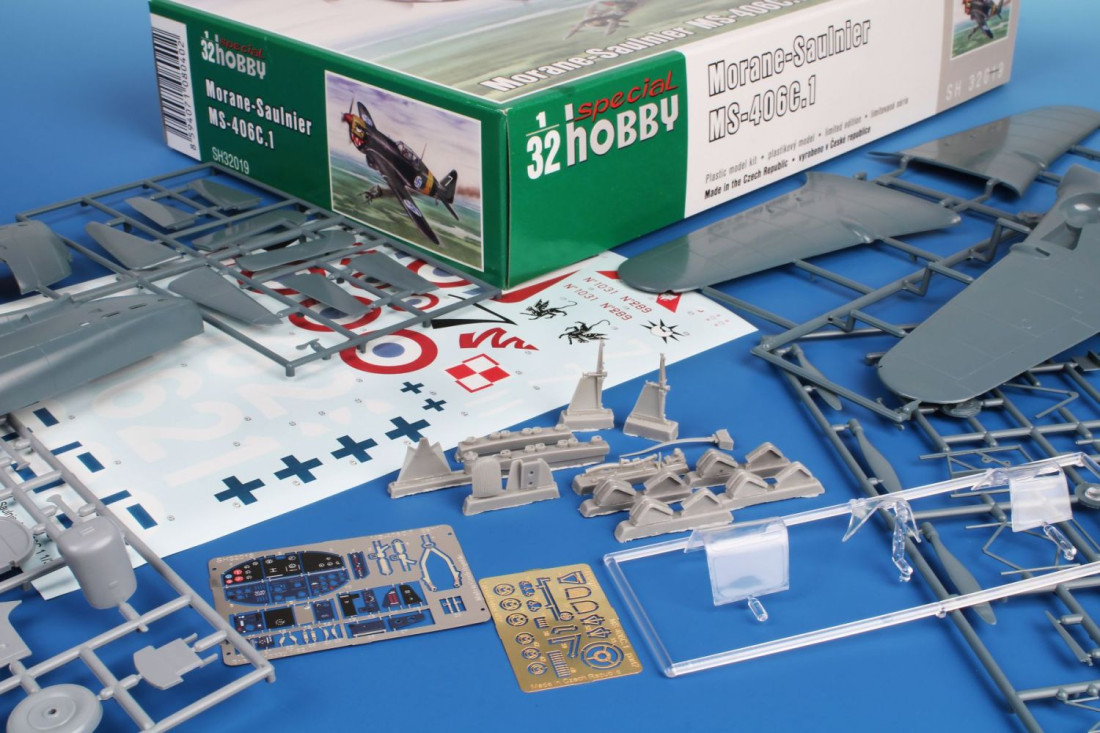 Frage sendenPlastikbausatz des französischen Jagdflugzeugs Morane-Saulnier MS.406C.1 aus dem Zweiten Weltkrieg.