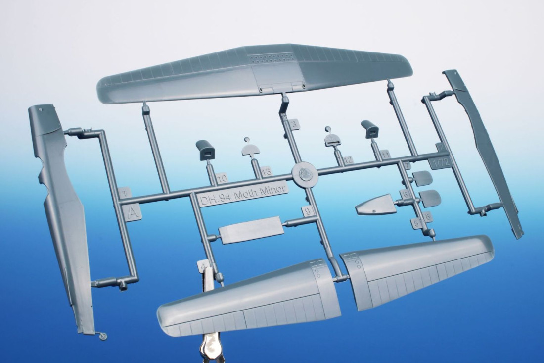 Frage sendenPlastikbausatz des britischen Touristen- und Trainingsflugzeugs De Havilland DH.94 Moth Minor.