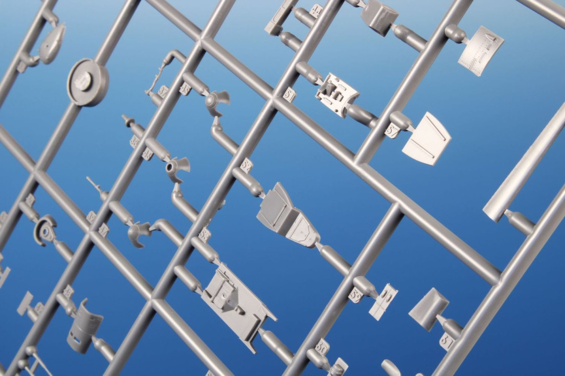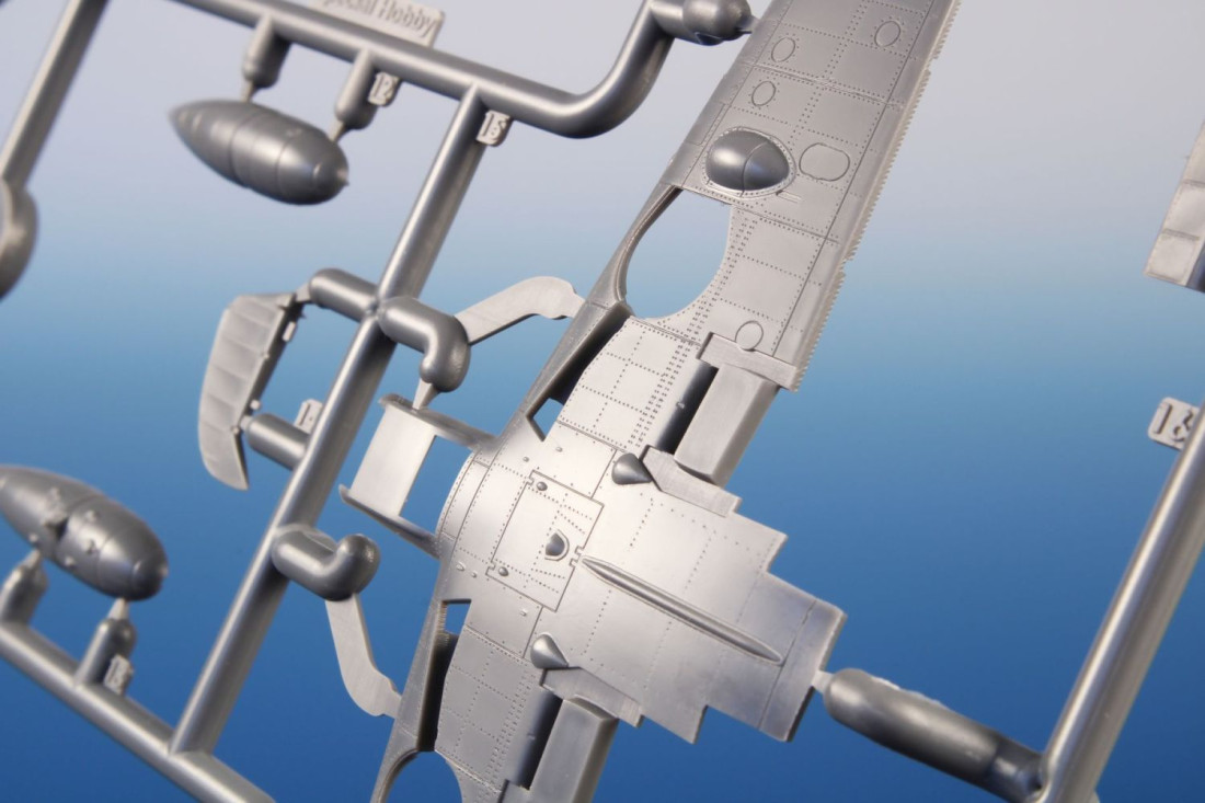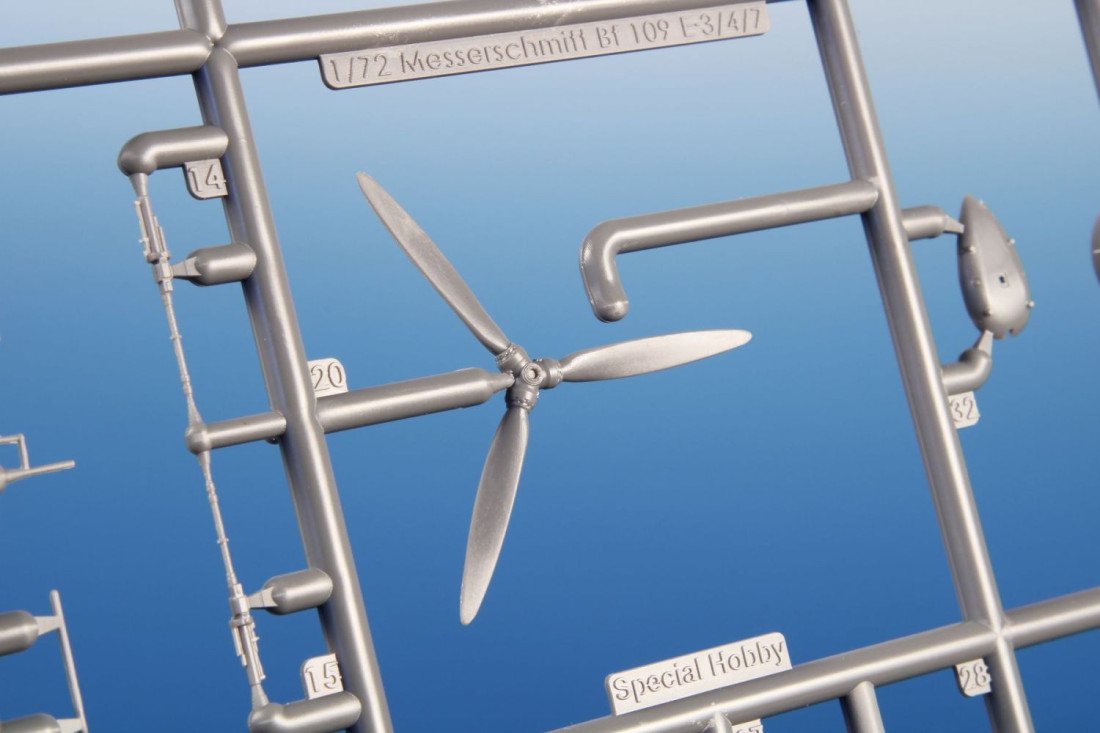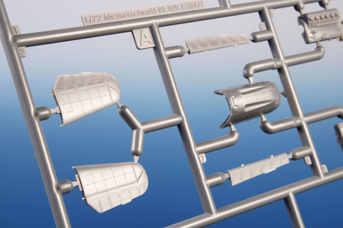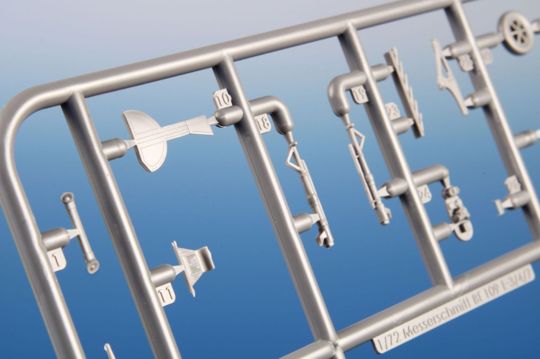Frage sendenPlastikbausatz des deutschen Jagdflugzeugs Messerschmitt Bf 109E-4/7 aus dem Zweiten Weltkrieg.