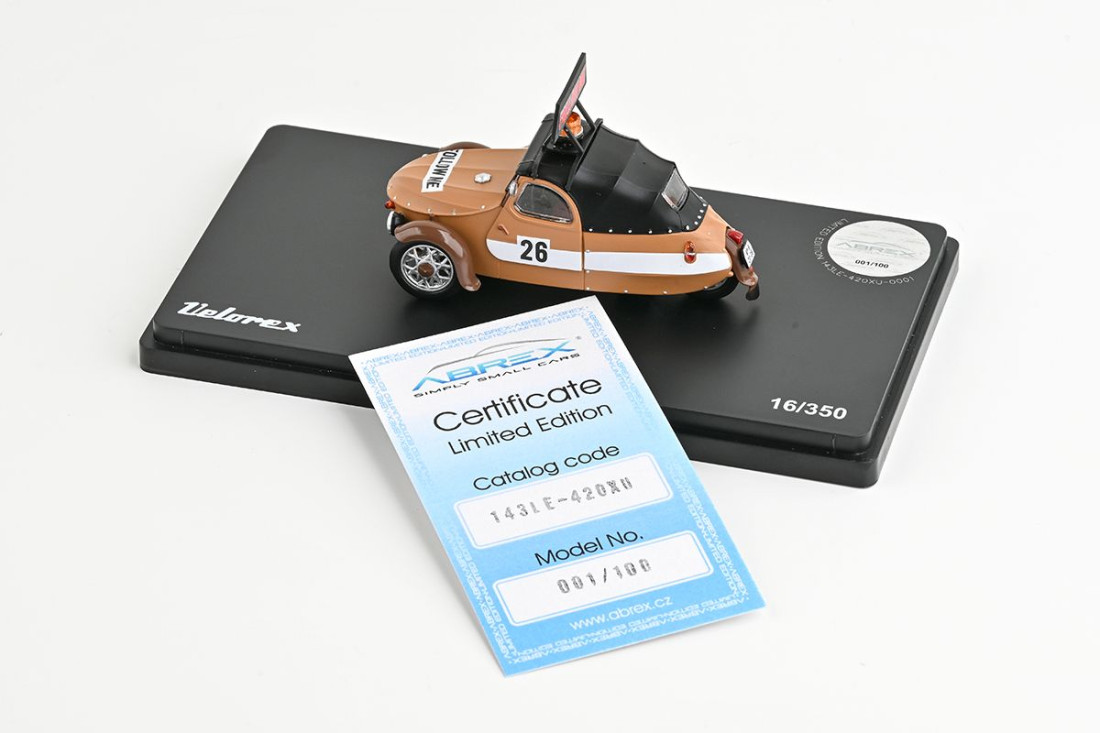 Frage sendenSammlermodell des legendären Velorex-Fahrzeugs aus Metall im Maßstab 1:43. Limitierte Auflage – nur 146 Stück gefertigt! Mit Seriennummer auf dem Chassis. Das Modell wurde vollständig in Tschechien hergestellt!