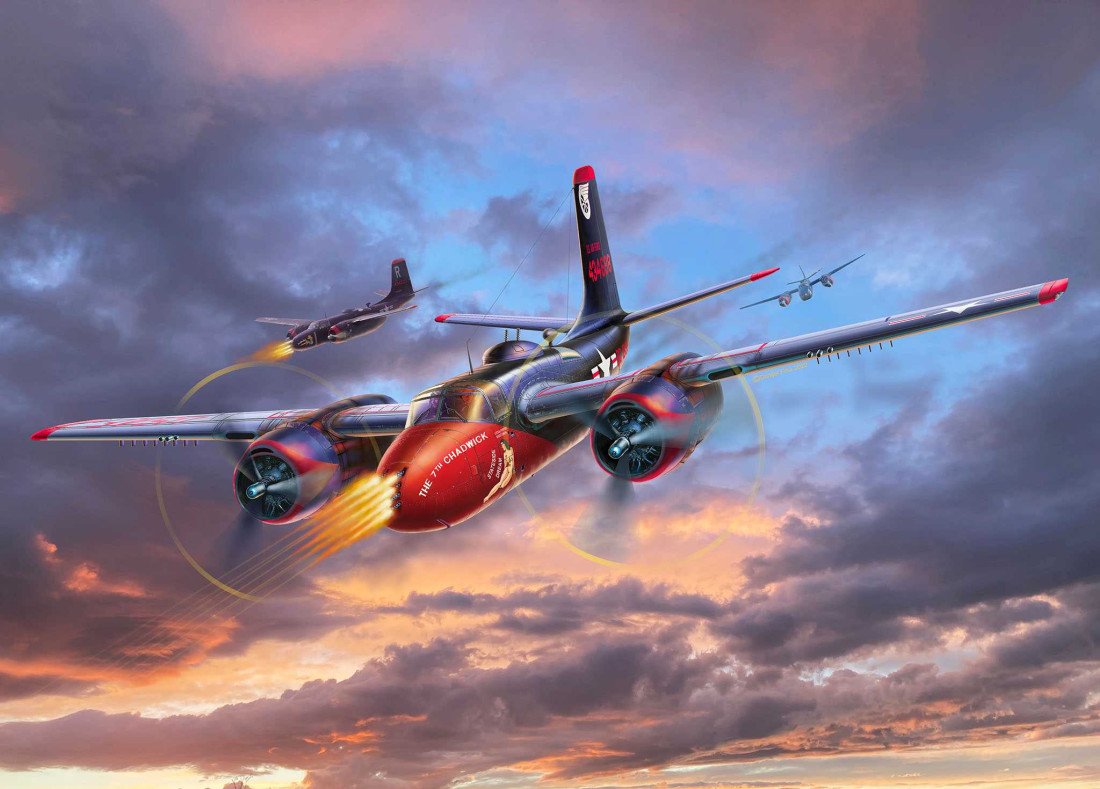 Plastiková stavebnice amerického dvoumotorového bombardovacího a bitevního letounu Douglas B-26C Invader.