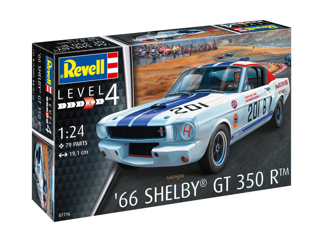 Plastiková stavebnice klasického amerického závodního vozu Shelby GT 350 R z roku 1966. Automobil z dílny legendárního Carolla Shelbyho představoval vylepšenou verzi již tak působivého Fordu Mustang.