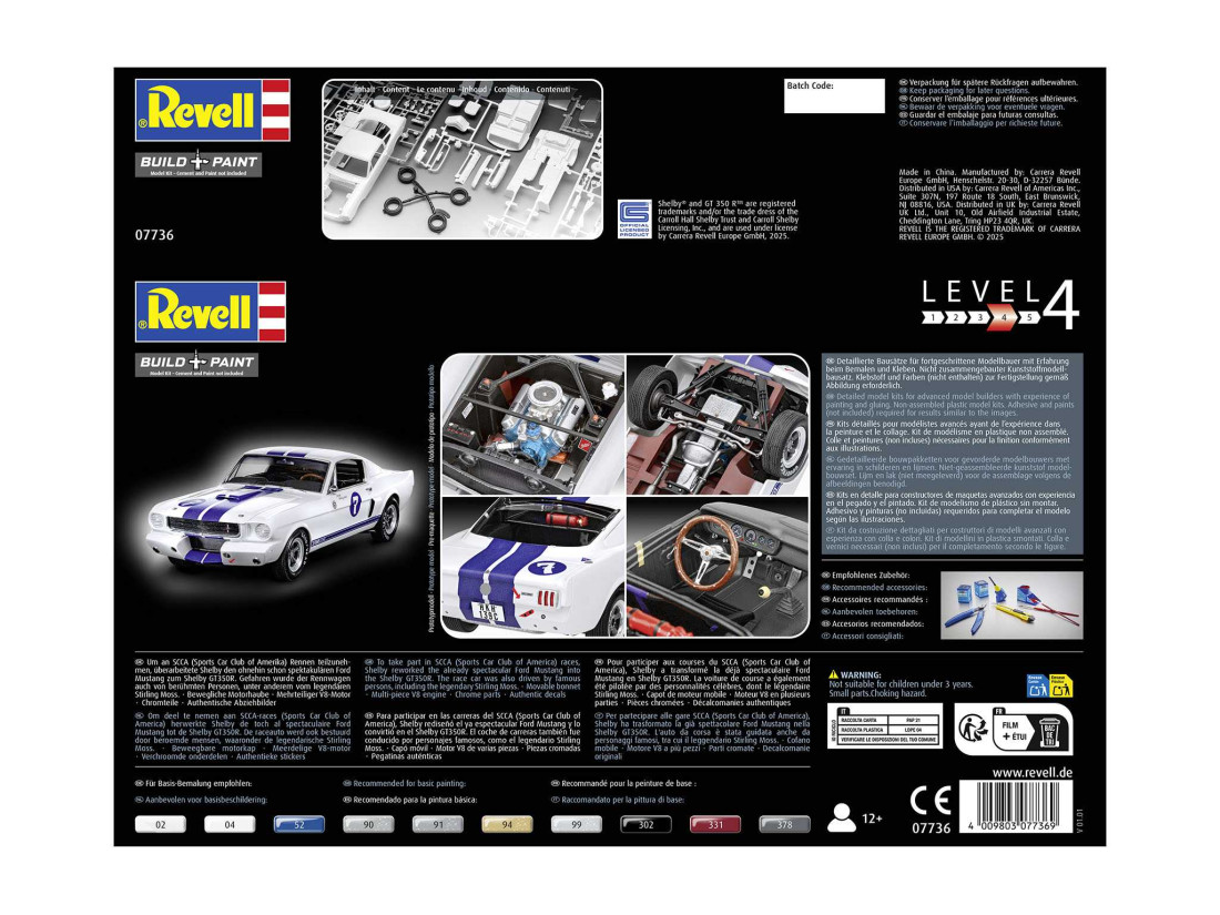 Plastikbausatz des klassischen amerikanischen Rennwagens Shelby GT 350 R von 1966. Das Auto aus der Werkstatt des legendären Carroll Shelby war eine verbesserte Version des bereits beeindruckenden Ford Mustang.