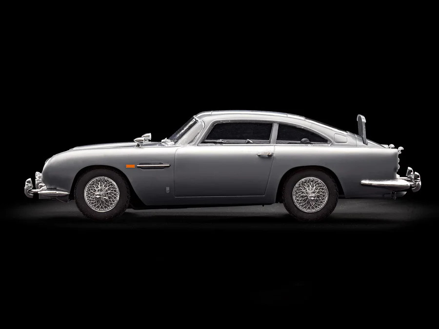 Dieser detaillierte, zusammensteckbare Kunststoffbausatz für Anfänger stellt den Aston Martin DB-5 Supersportwagen von Agent 007 James Bond dar.