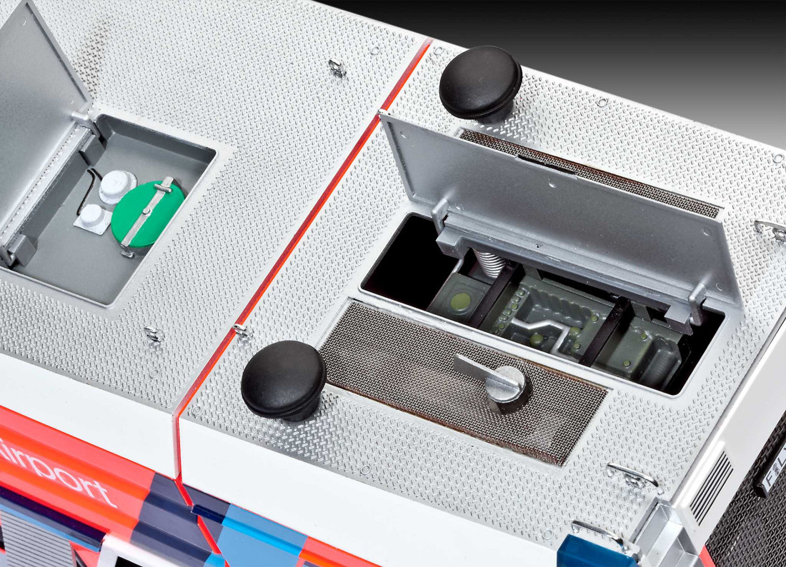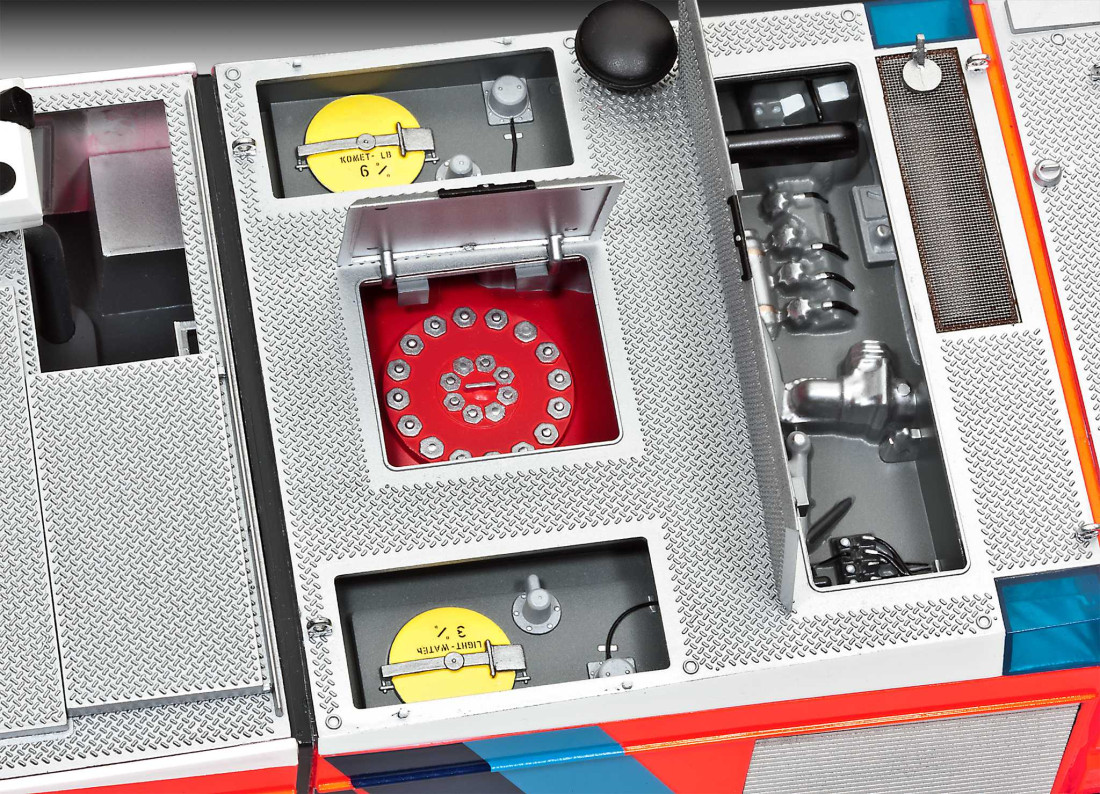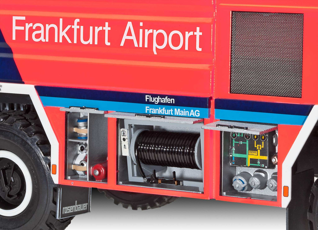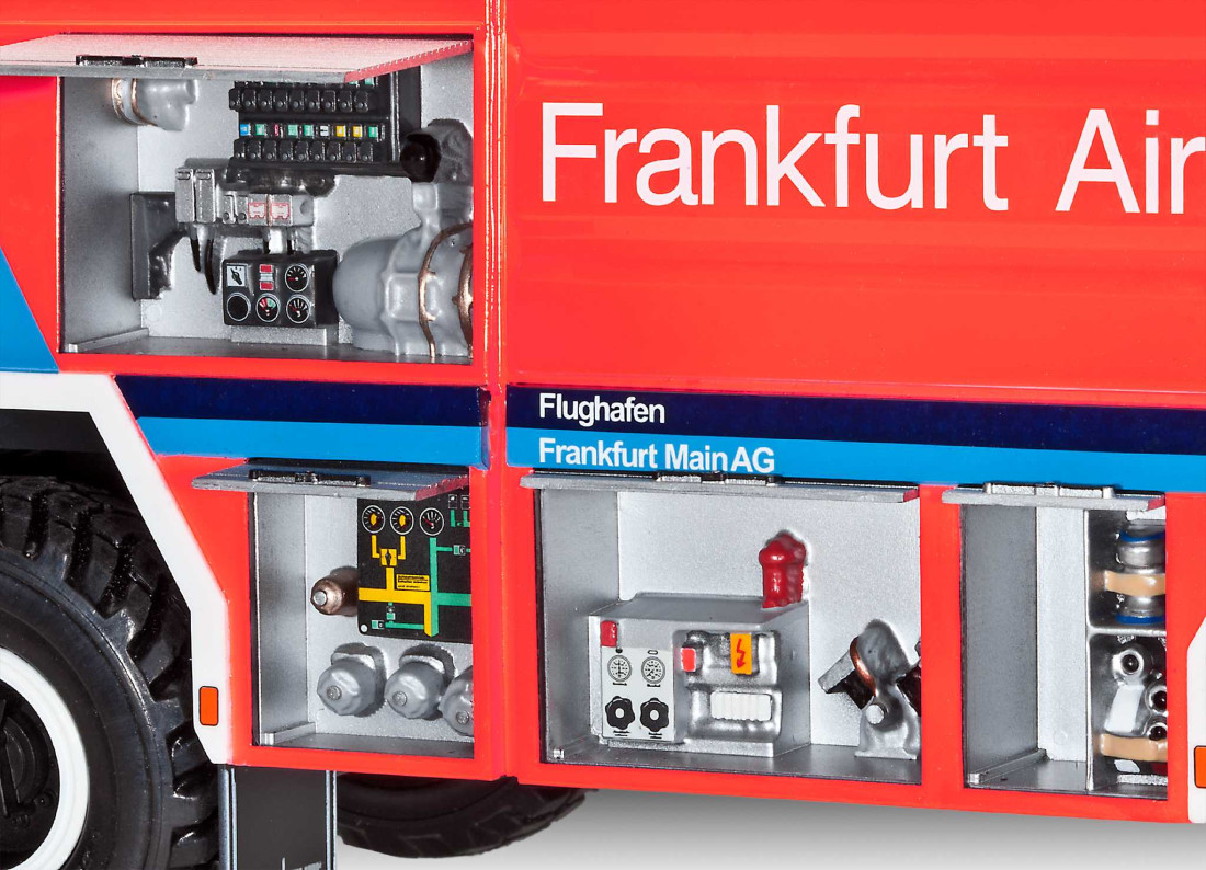 Das Fahrzeug ist mit riesigen Wasser- und Schaumtanks ausgestattet, die durch eine leistungsstarke Dachkanone ergänzt werden, die den Brandherd aus großer Entfernung bekämpfen kann. Simba ist zur Legende geworden, insbesondere an großen internationalen Flughäfen wie Frankfurt oder München, wo er jahrzehntelang das Rückgrat des Brandschutzes bildete. Der Bausatz im Maßstab 1:24 von Revell gibt die massive Konstruktion dieser Maschine detailgetreu wieder, inklusive eines detaillierten Fahrgestells, einer geräumigen Kabine und eines speziellen Aufbaus mit Feuerwehrausrüstung.
