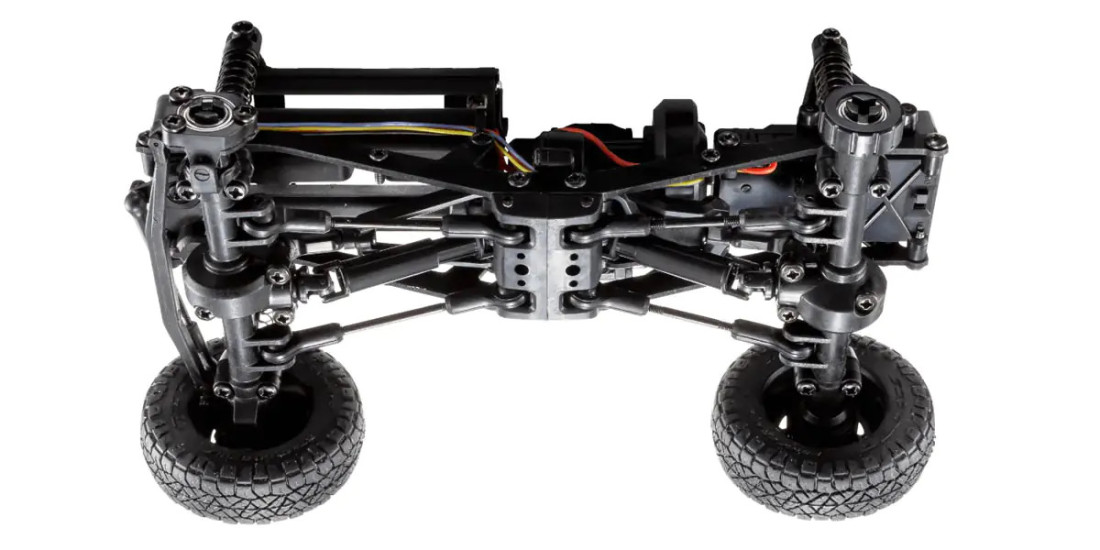 Da Crawler-Modelle für die Überwindung schwierigen Geländes konzipiert sind, ist die Karosserie entsprechend verstärkt. Das Fahrgestell-Design ist von echten Geländewagen mit Leiterrahmen inspiriert. Die Starrachsen verfügen über einen sehr guten Überhang, der eine Grundvoraussetzung für hervorragende Fahreigenschaften auch unter extremen Bedingungen ist.