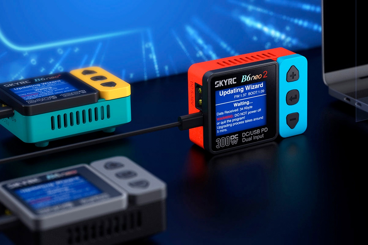 Das SKY RC B6neo2 300W Miniatur-Ladegerät wurde für das Laden mit hohen Stromstärken entwickelt und bietet dabei einfache Bedienung in einem handlichen Format, das in jede Hosentasche passt. Mit dem B6neo2 lassen sich gängige Akkutypen (NiCd, NiMH, Li-Polymer, Li-Ion, Li-Fe, Li-HV, Blei) laden und entladen. Zusätzlich verfügt es über einen integrierten 6-Kanal-Balancer, der ein besonders sicheres und komfortables Laden von Lithium-Akkus gewährleistet. Es kann außerdem im geregelten Netzteilmodus mit einer einstellbaren Ausgangsspannung von 5–27 V und einem Strom von 1–15 A betrieben werden.