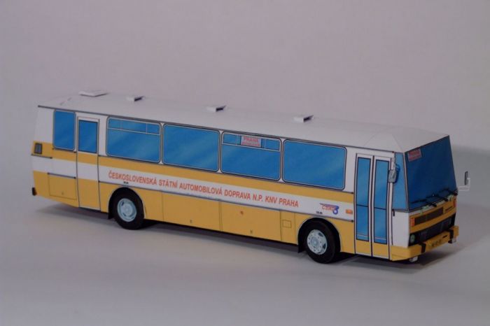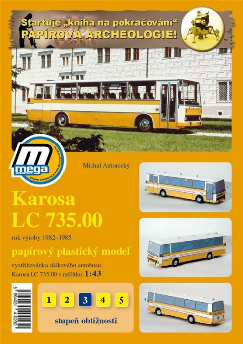 Papier-Modell ist immer noch ein Liebling der Bus LC 735.00 in klassischen gelben Farbe aus dem Verlag Mega Grafik / Michael Antonického 1:43.
