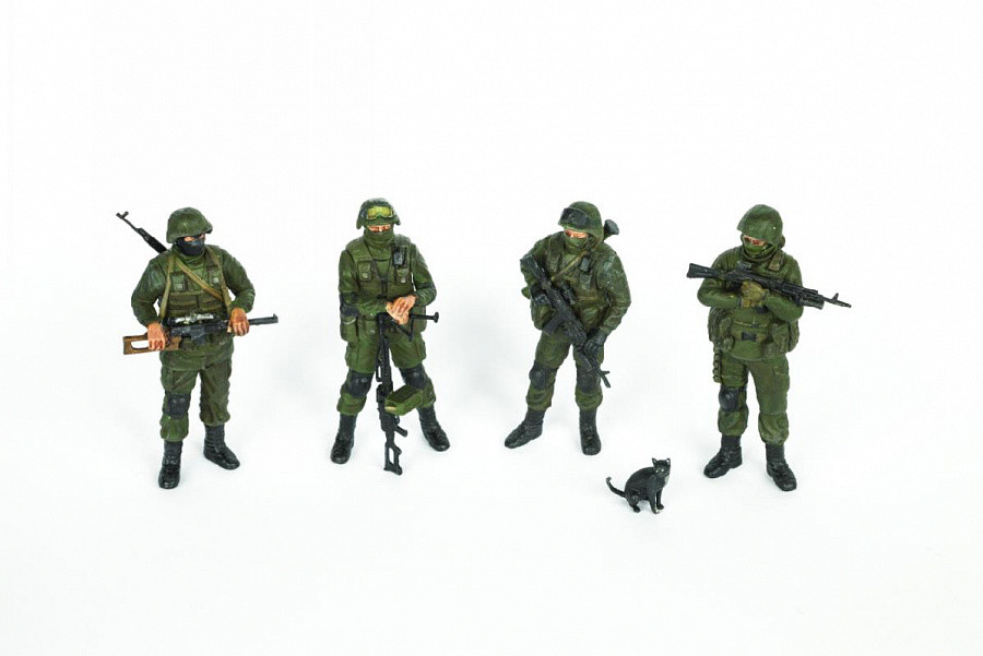 Frage sendenThe kit includes 4 figures of the so called «polite people» and 1 cat figure. Mysterious military units appeared in Crimea at the end of February 2014 – later one started to suspect that these “polite people” are in fact the units of the Russian army.