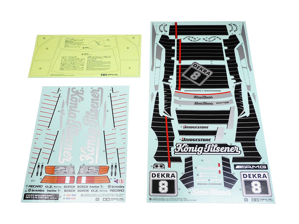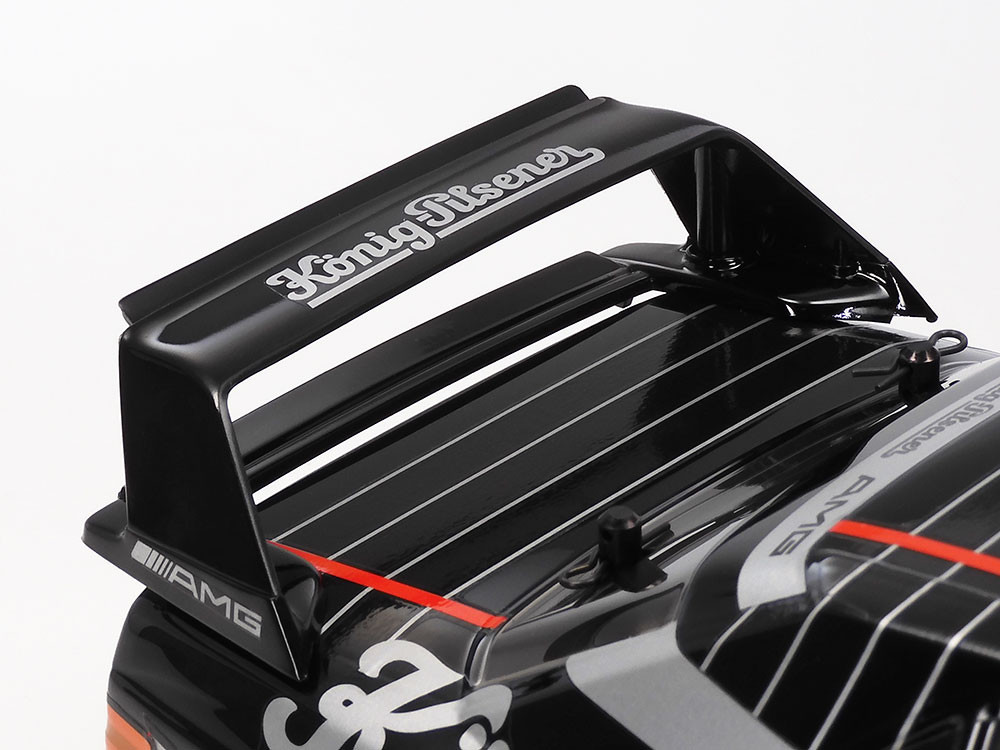 Zum Betrieb des Modells benötigen Sie mindestens eine 2-Kanal-Fernsteuerung (Sender, Empfänger und Servo), einen 7,2-V-Sechszellenakku und ein passendes Ladegerät. Wir empfehlen, für die Lackierung der Karosserie Tamiya-Sprühfarben für Lexan-Karosserien zu verwenden.