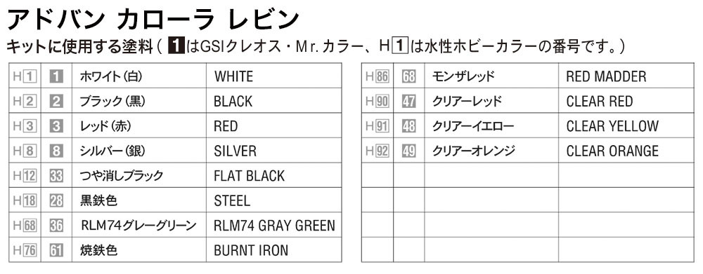 Doporučené barvy GSI Gunze Hobby Color (H):