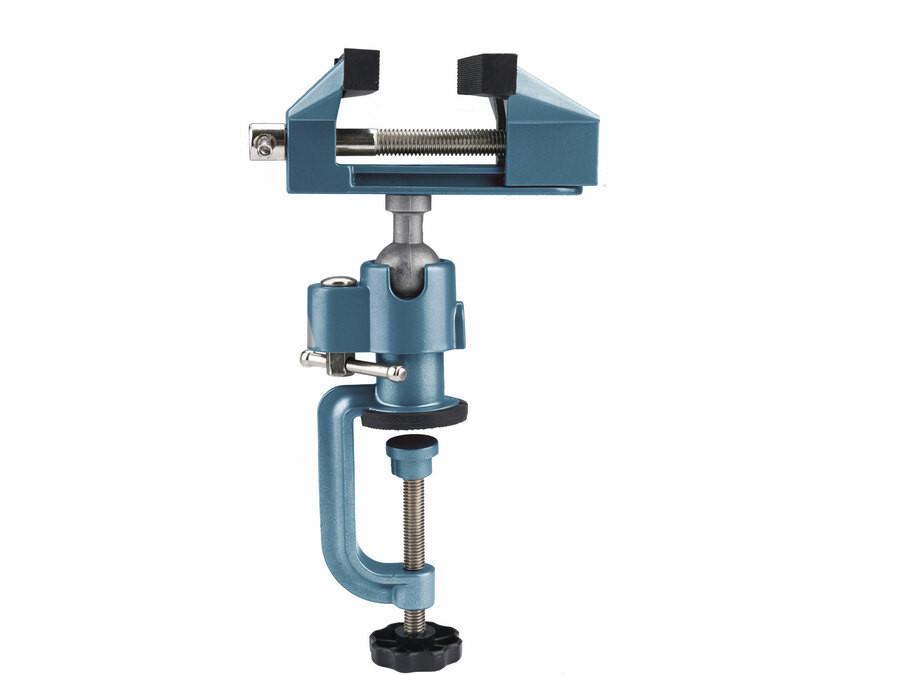 Tělo svěráku je vyrobeno z hliníku a čelisti jsou opatřeny odnímatelnými pryžovými krytkami. Kloub s fixací dovoluje nastavení téměř ve všech směrech. Šířka čelistí 75 mm, rozevření čelistí až 55 mm, rozsah upínacího klipu na stůl až 55 mm.