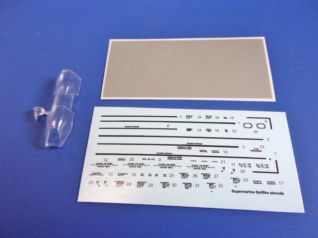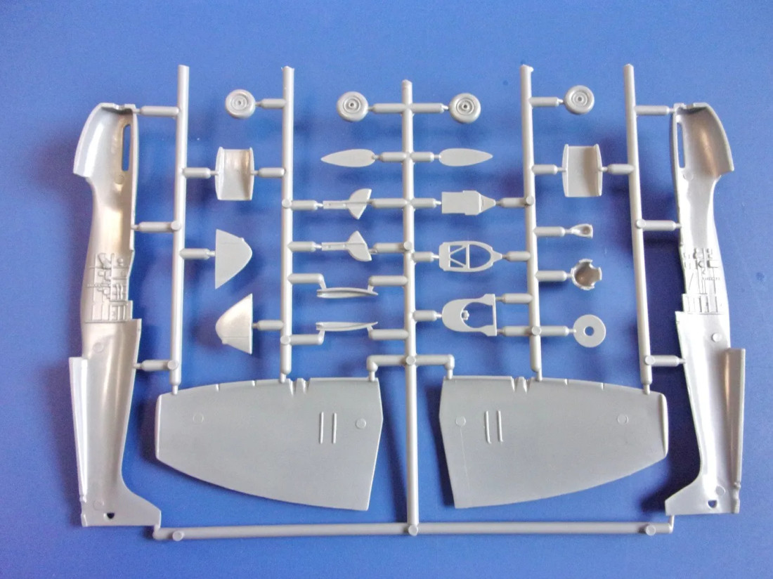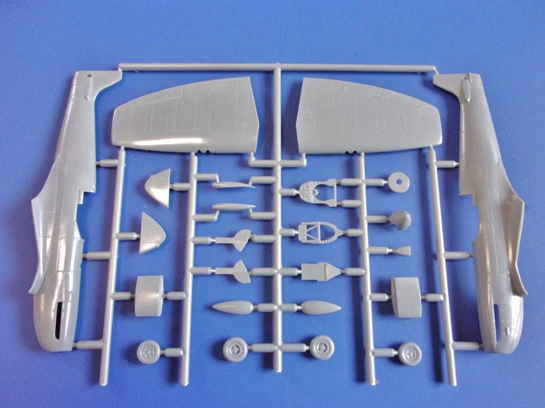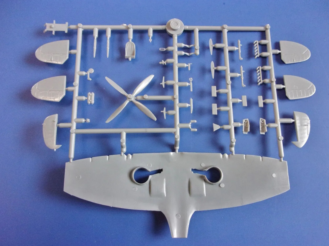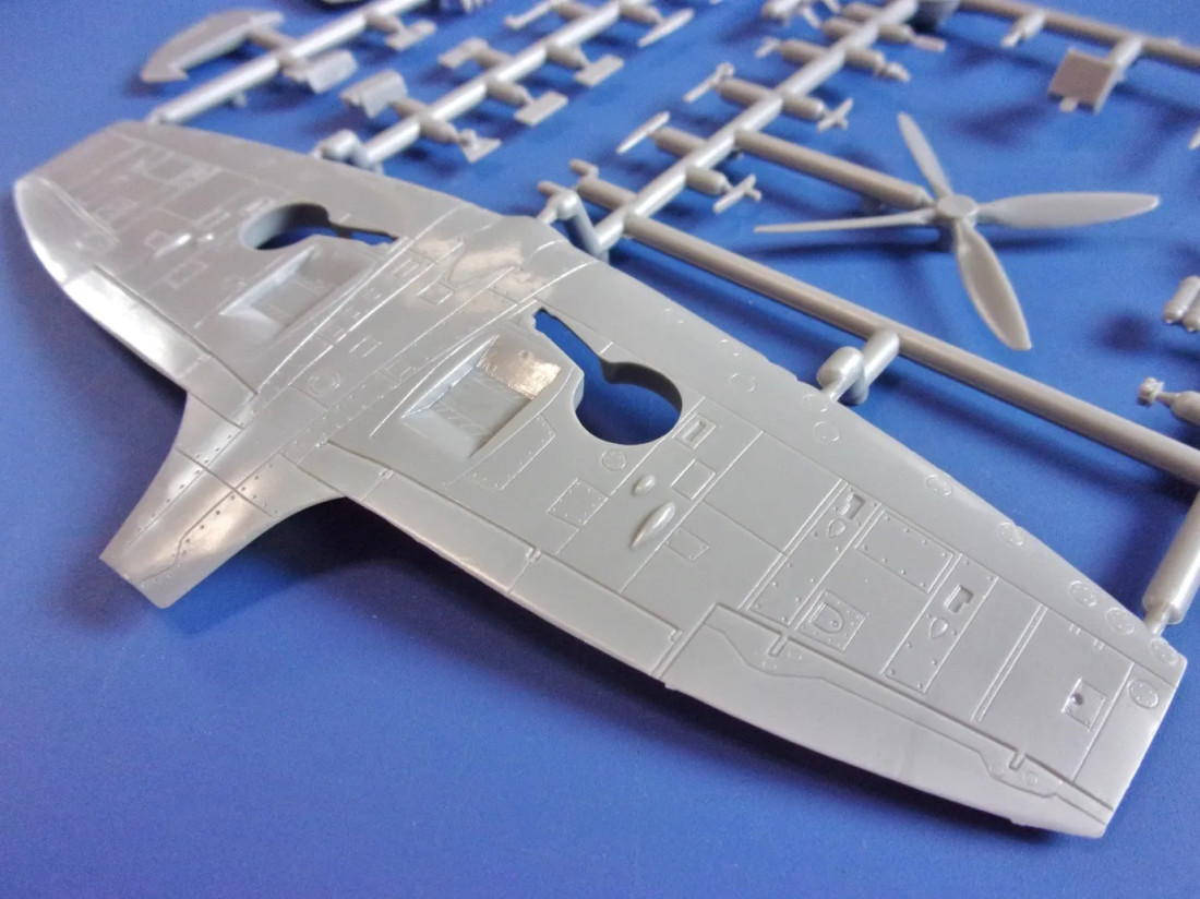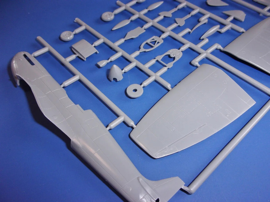 Plastikbausatz des britischen Jagdflugzeugs Supermarine Spitfire Mk.IX UTI aus dem Zweiten Weltkrieg.