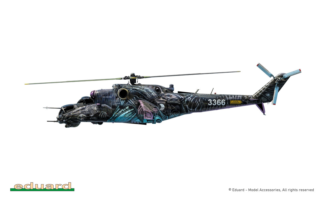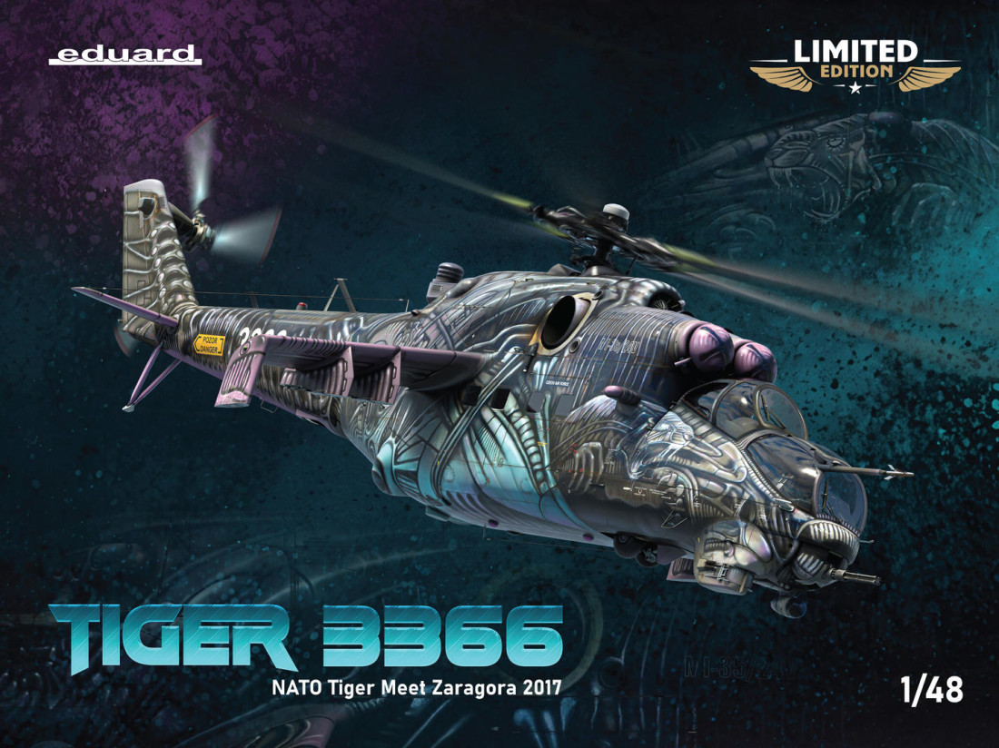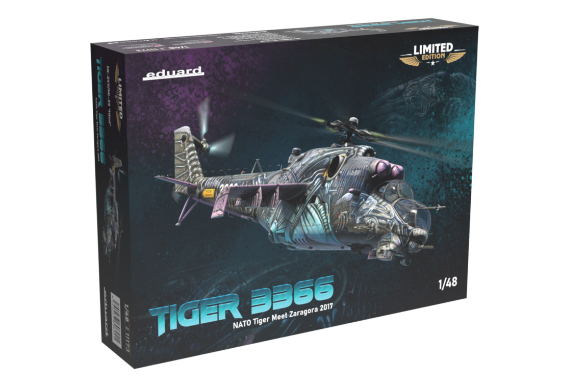 Ein Bausatz des sowjetischen Kampfhubschraubers Mil Mi-35 in limitierter Auflage im Maßstab 1:48. Mit diesem Bausatz lässt sich der Hubschrauber der tschechischen Luftwaffe in der speziell für das Tiger Meet 2016 in Saragossa, Spanien, entworfenen Tarnlackierung bauen.