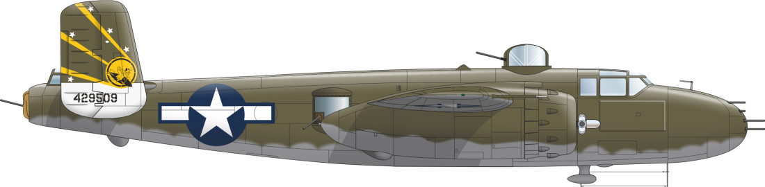 Die North American B-25 Mitchell war wohl einer der besten Mittelstreckenbomber des Zweiten Weltkriegs. Ihr Erstflug fand 1939 statt. Die B-25 Mitchell zeichnete sich durch ihre außergewöhnliche Einsatzflexibilität aus, die unter anderem ihren beiden 1.750 PS starken Wright R-2600 Cyclone-Motoren zu verdanken war. Benannt wurde sie nach General Billy Mitchell, dem Vater und Gründer der US Air Force.
