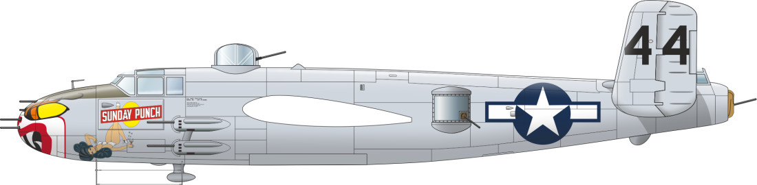 Die North American B-25 Mitchell war wohl einer der besten mittelschweren Bomber des Zweiten Weltkriegs. Ihr Erstflug fand 1939 statt. Die B-25 Mitchell zeichnete sich durch ihre außergewöhnliche Einsatzflexibilität aus, die unter anderem ihren beiden 1.750 PS starken Wright R-2600 Cyclone-Motoren zu verdanken war. Sie wurde nach General Billy Mitchell benannt, der als Vater und Gründer der United States Air Force gilt.
