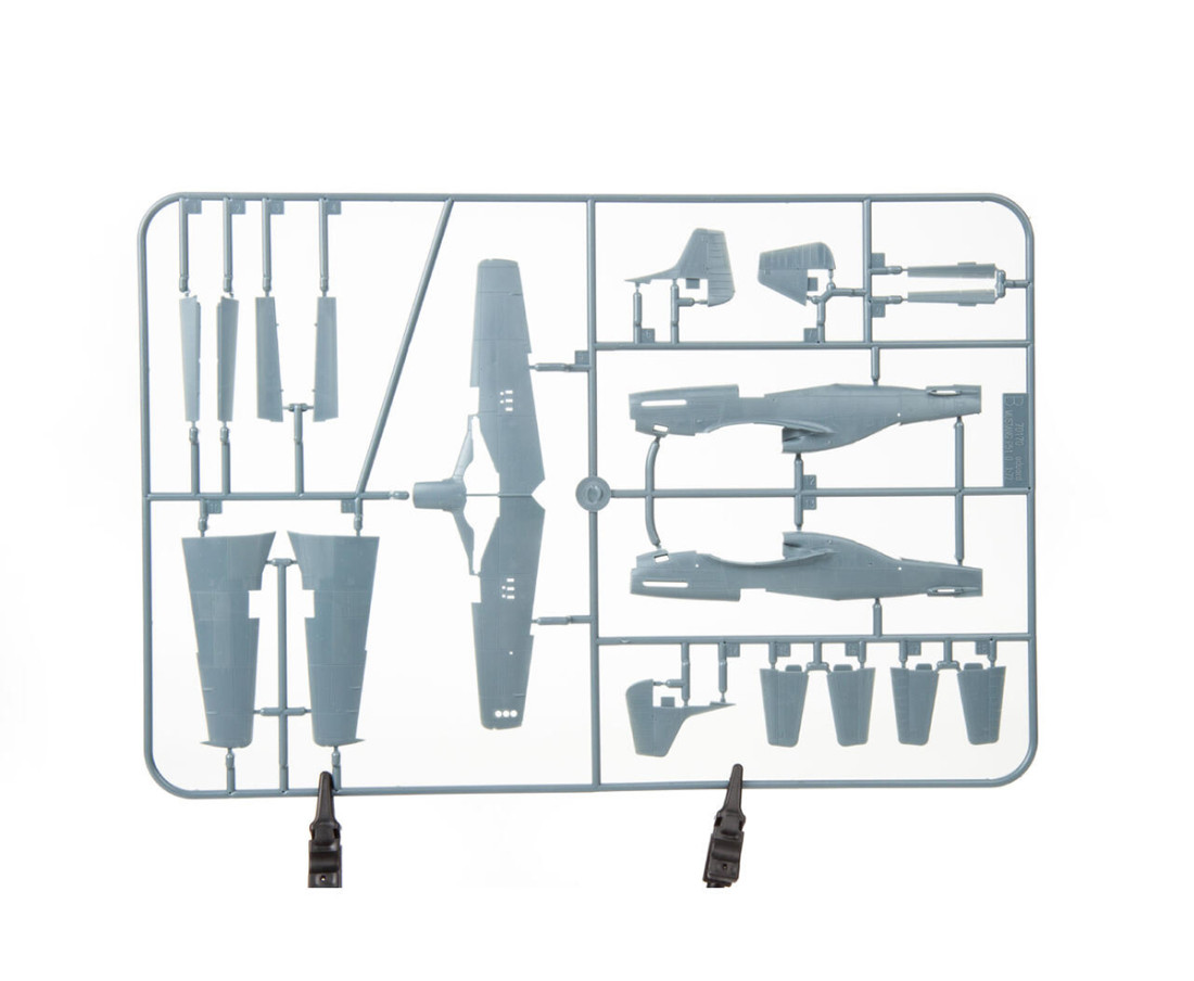 Frage sendenPlastikmodellbausatz des amerikanischen Jagdflugzeugs North American P-51D Mustang aus dem Zweiten Weltkrieg. Wochenendausgabe im Maßstab 1:72.