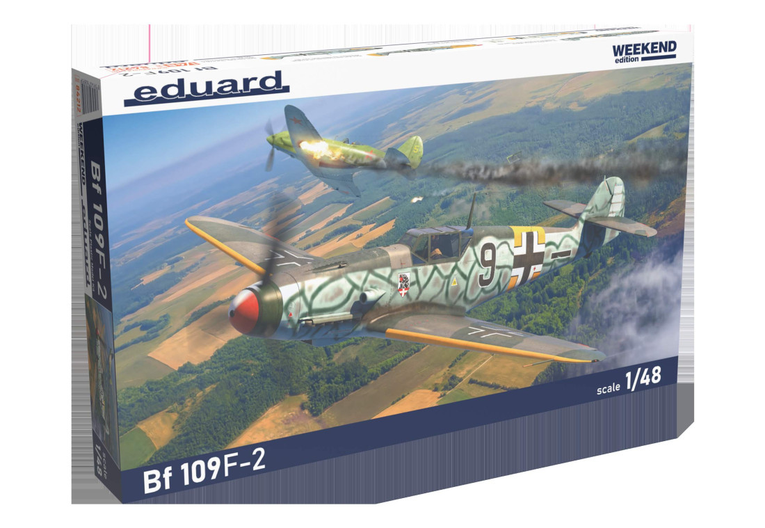 Plastikmodellbausatz des deutschen Jagdflugzeugs Messerschmitt Bf 109 F-2 aus dem Zweiten Weltkrieg. Wochenendausgabe im Maßstab 1:48.