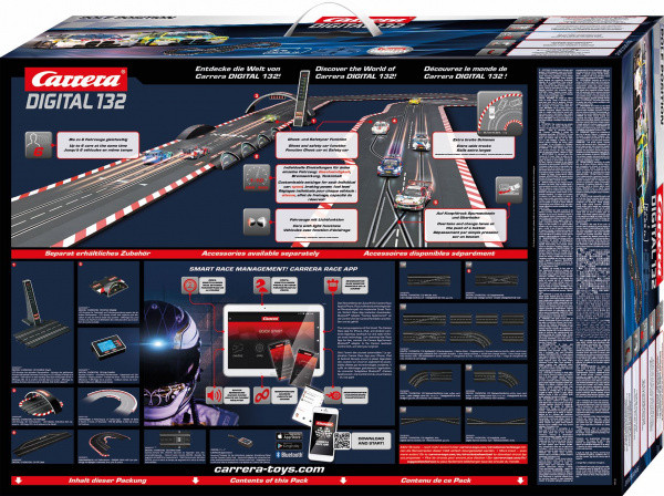 DIGITAL 132 – digitální autodráha umožňující jízdu 6 aut v jedné dráze a jejich vzájemné přejíždění. Carrera znamená ve španělštině závod, a jedno vám můžeme zaručit – jakmile rozbalíte krabici s logem Carrera, rozproudí se vaše závodní krev na nejvyšší otáčky, a je jedno na jakém okruhu a s jakým autem budete zrovna závodit. Tento pocit zažívají tisíce fanoušků již od roku 1963, kdy značka Carrera uvedla na trh svou první závodní autodráhu. Během následujících více než čtyřiceti let se v oblasti autodráh, aut a příslušenství Carrera probojovala až na úplnou špičku. Dnes nabízí produkty nejvyšší kvality, které jsou určené nejen dětem, ale i dospělým, pro něž se staly autodráhy hobby na celý život.