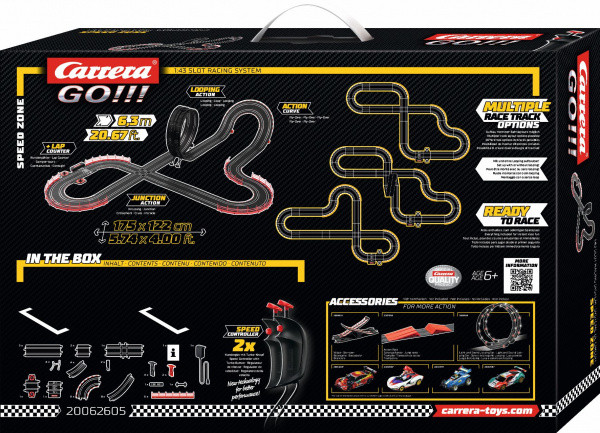 GO!!! – úvodní řada do světa autodráh Carrera. Carrera znamená ve španělštině závod a jedno vám můžeme zaručit. Jakmile rozbalíte krabici s logem Carrera, rozproudí se vaší závodní krev na nejvyšší otáčky, a je jedno na jakém okruhu a s jakým autem budete zrovna závodit. Tento pocit zažívají tisíce fanoušků již od roku 1963, kdy značka Carrera uvedla na trh svou první závodní autodráhu. Během následujících více než čtyřiceti let se v oblasti autodráh, aut a příslušenství Carrera probojovala až na úplnou špičku. Dnes nabízí produkty nejvyšší kvality, které jsou určené nejen dětem, ale i dospělým, pro něž se staly autodráhy hobby na celý život.