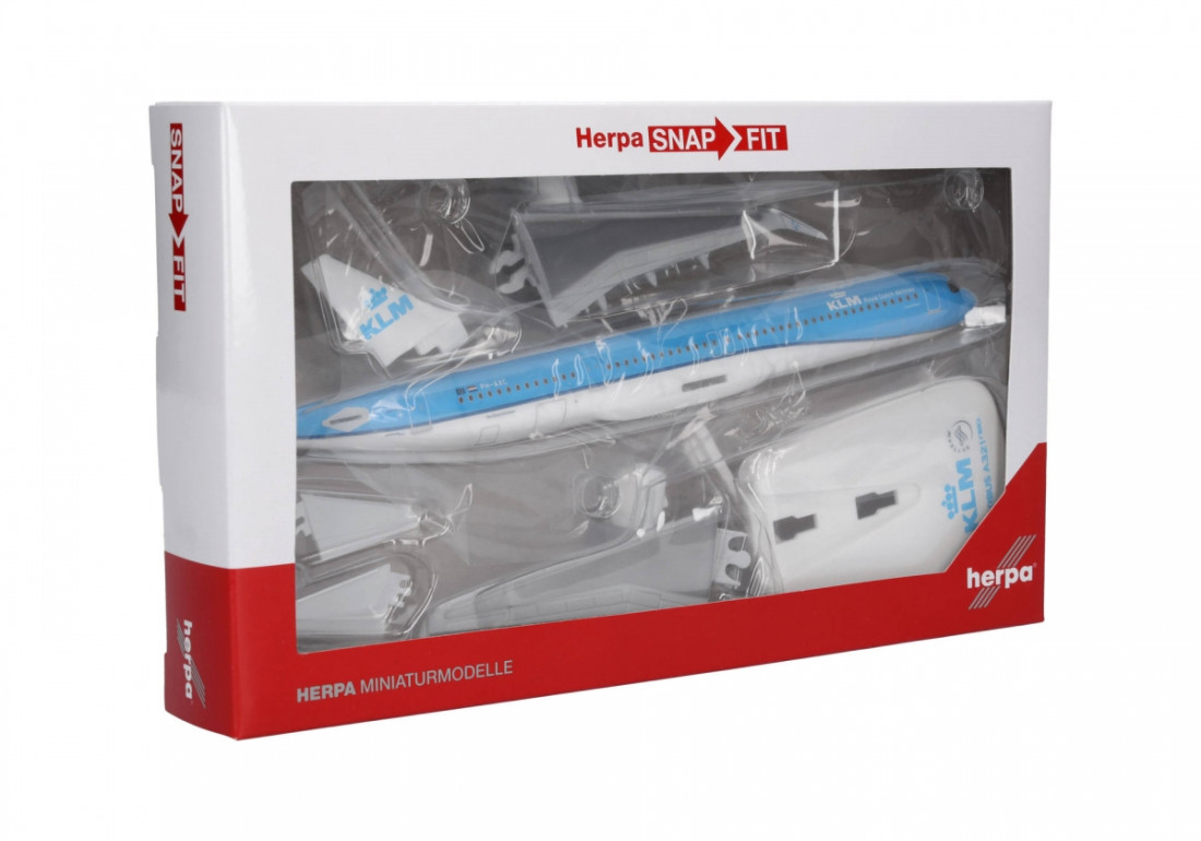 Die Snap-Fit-Modelle von Herpa wurden ursprünglich für den Direktverkauf an Bord von Flugzeugen entwickelt. Sie bieten ein attraktives Design und eine sehr gute Verarbeitung zu einem erschwinglichen Preis. Die Modelle der Snap-Fit-Serie sind in Maßstäben von 1:250 bis 1:100 erhältlich. Im Lieferumfang ist ein eleganter Ständer zur Präsentation des Modells enthalten. Für die zeitsparende Montage wird kein Klebstoff benötigt.