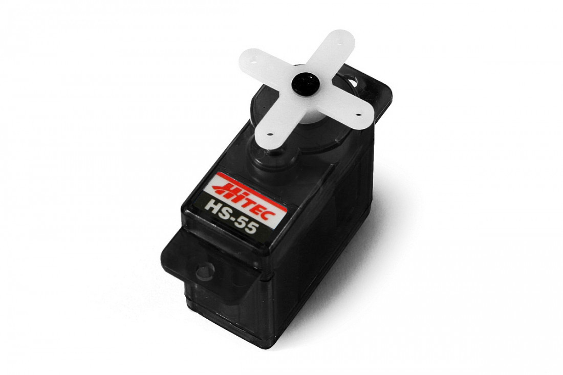 Pikoservo HS-55 s plastovými převody vhodné pro slow-flyery, park-flyery, RC házedla, minicombat, malé elektrolety nebo mikrovrtulníky. Příslušenství dodáváno v plastovém sáčku. Tah: 1,1 kg při 4,8 V, rychlost: 0,18 kg/60° při 4,8 V. Napájení: 4,8-6,0 V. Rozměry: 22,8x11,6x24 mm, hmotnost: 8 g.