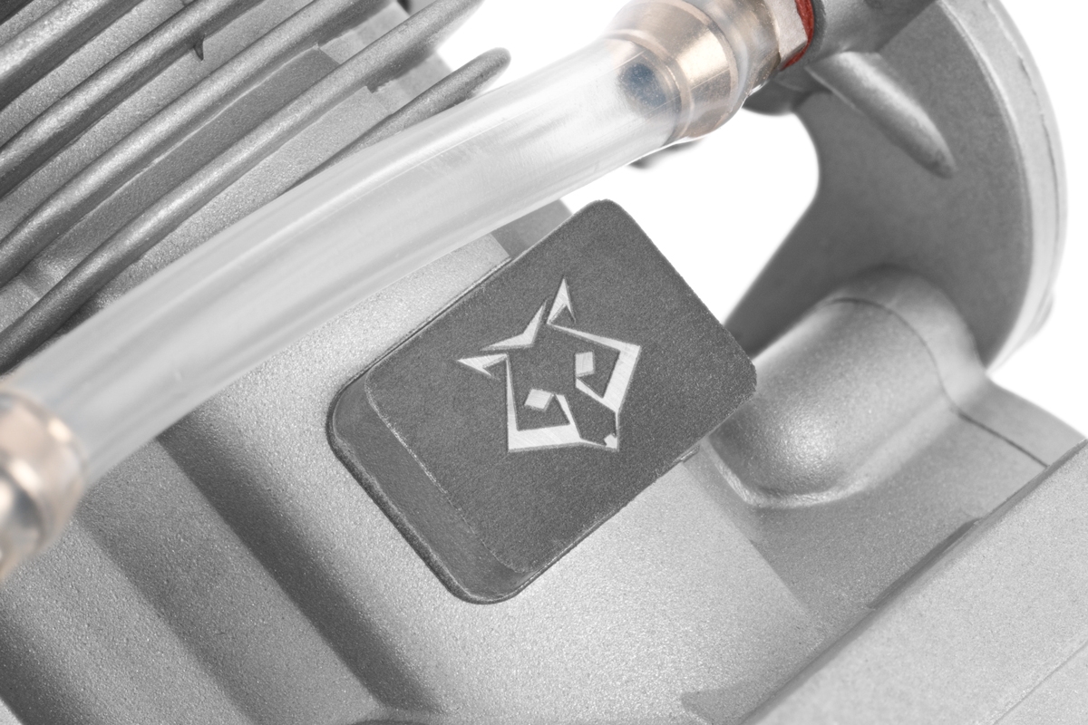 Balení obsahuje motor s RC karburátorem, hlavní jehlu se zadní montáží, expanzní dvoukomorový tlumič a návod.