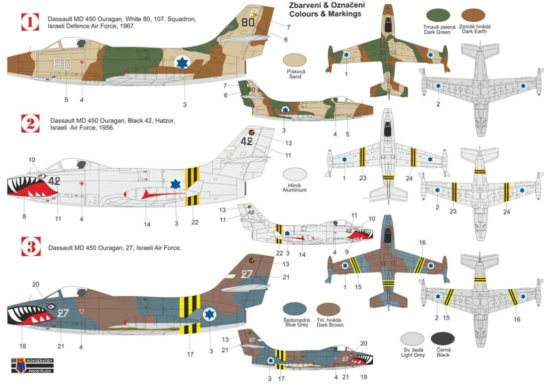 Frage sendenPlastikbausatz des französischen Düsenjägers Dassault MD.450 Ouragan.