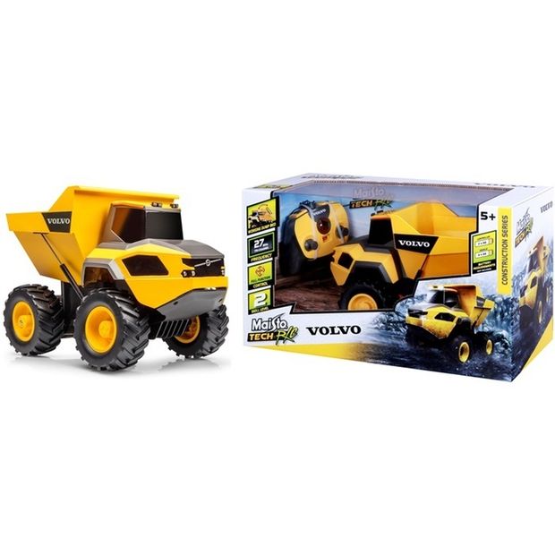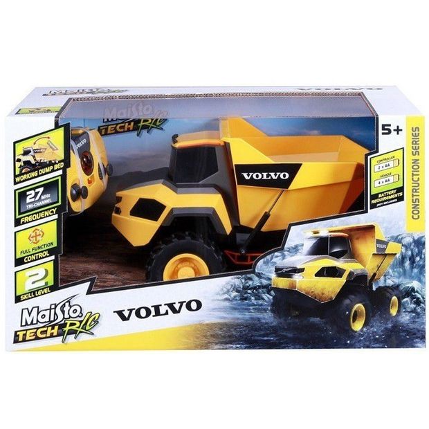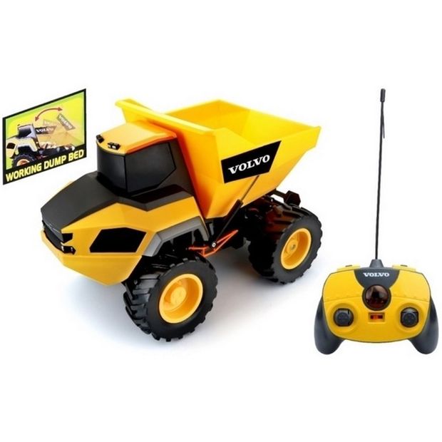 Dálkově ovládaný důlní sklápěč Volvo jezdí vpřed/vzad, zatáčí vpravo/vlevo a má funkční sklápění kroby. Díky velkým pneumatikám, které jsou opatřeny terénním vzorkem, a funkčnímu odpružení si snadno poradí i s náročným terénem. Model je dodáván včetně tříkanálového vysílače 27MHz.