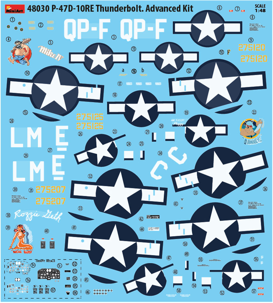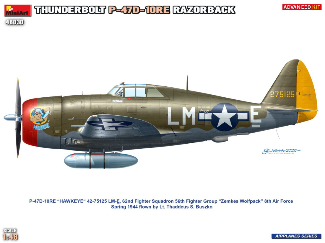 Die Republic P-47 Thunderbolt war ein amerikanisches Kampfflugzeug, der größte und schwerste einsitzige Kolbenmotorjäger seiner Zeit und ist es bis heute. Während des Krieges wurde sie (zusammen mit der Lockheed P-38 Lightning und der North American P-51 Mustang) zu einem der drei Symbole der US Air Force.