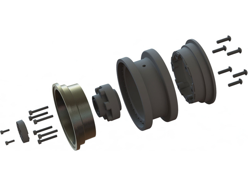 Pro-Line disk 2.9" Black Rhino Armory Gunmetal Aluminum Dual Offset (+5/+10 mm) pro RC auta Axial SCX6 v měřítku 1:6. Oficiálně licencováno společností Black Rhino Wheels. Vojenský ve styl, ideálním pro off-road. Čelní kryt z hliníku s 24 stavěcími šrouby. Dva offsety pro různé odsazení, šestihran 17 mm.